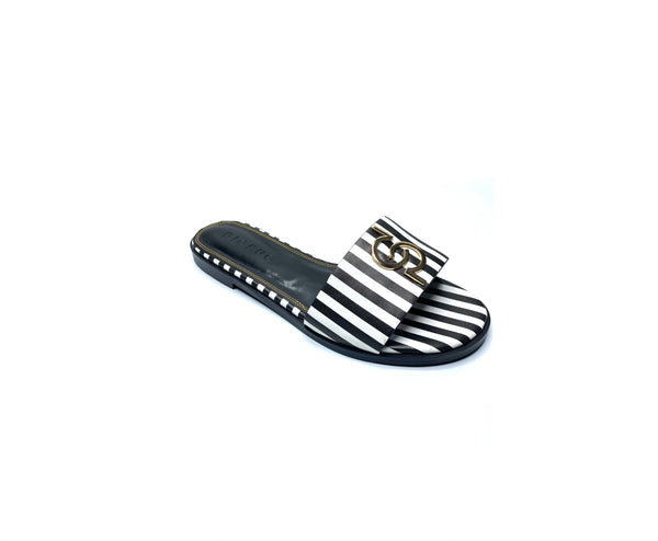 - Black & White stripe Strap Leather with Gold Metal Logo